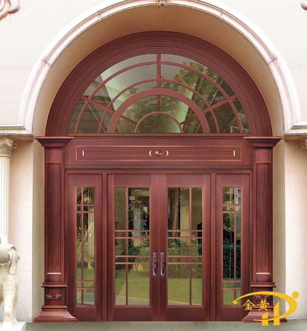 本款羅馬柱圓弧銅門,型號(hào)是M-9108,門面采用精工拼接工藝,原材料為洛陽(yáng)純紫銅或黃銅制作而成。