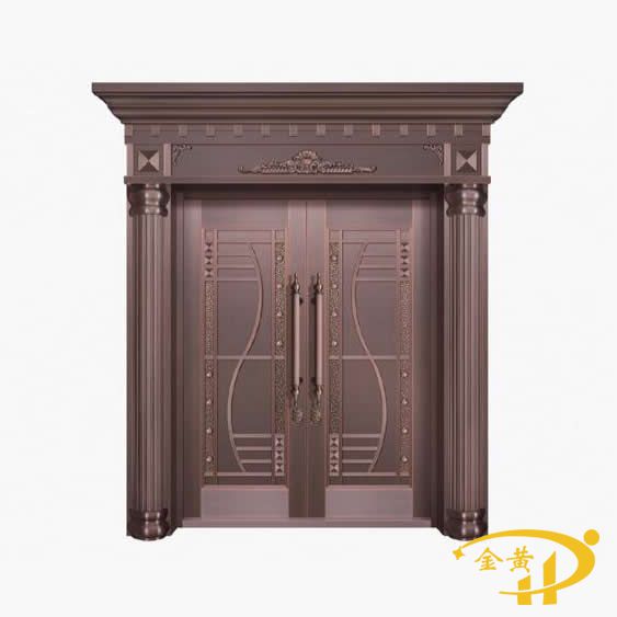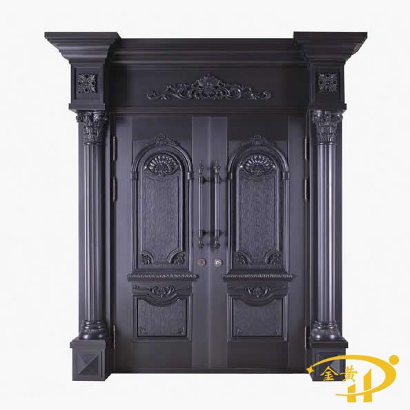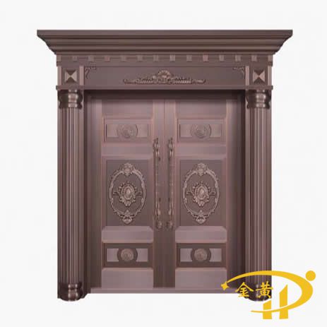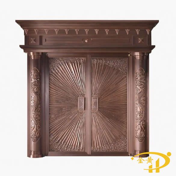 本款羅馬柱銅門(mén),型號(hào)是M-9065,門(mén)面采用整板模壓工藝,原材料為洛陽(yáng)純紫銅或黃銅制作而成。