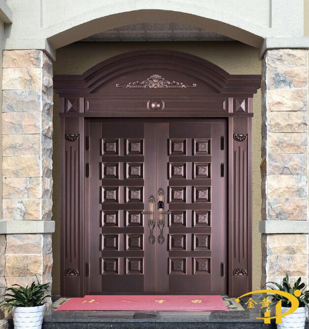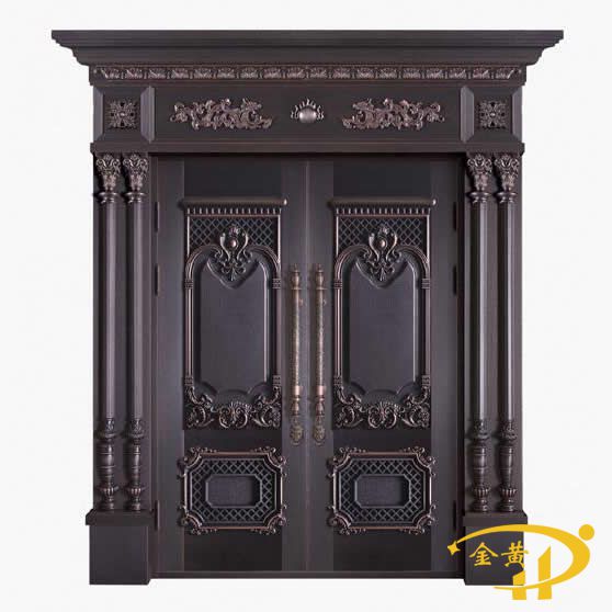 本款豪華別墅雙開門,型號(hào)是M-9002,門面采用純銅澆鑄工藝,原材料為洛陽純紫銅或黃銅制作而成。